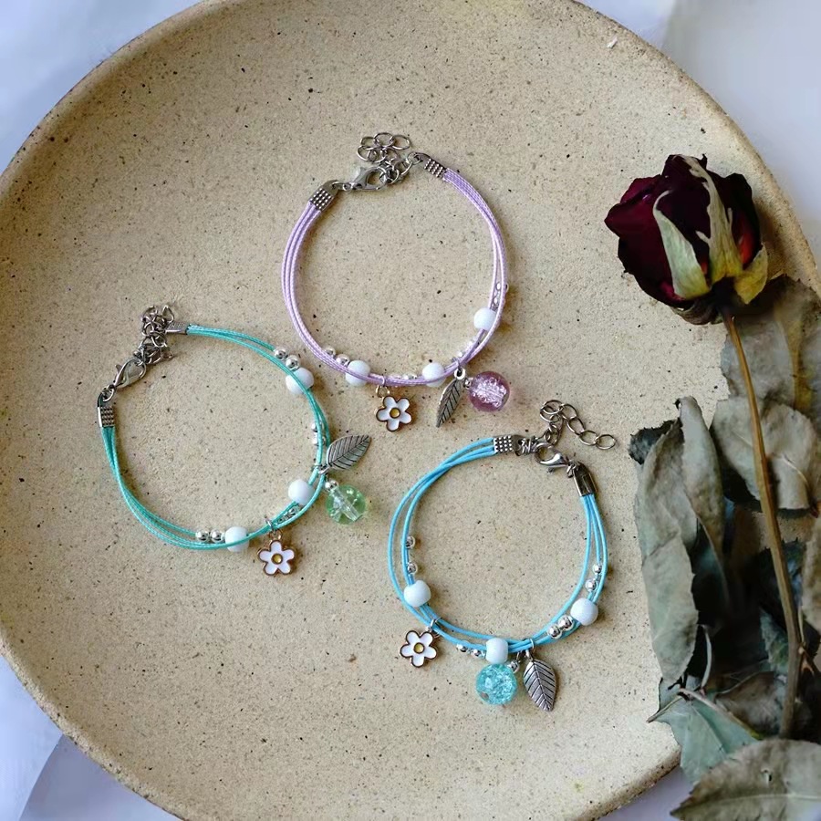 ED - GELANG TALI MODEL KOREA MOTIF DAUN & BUAH / GELANG TANGAN TALI KOREA BESTIE / BRACELET GELANG TANGAN COUPLE BESTIE