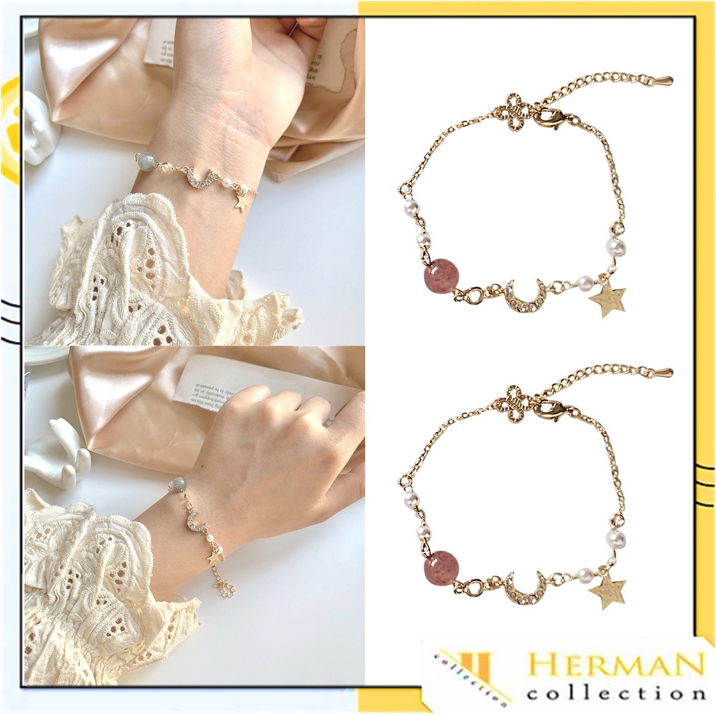 HC Gelang Couple Gelang Mutiara Gelang Rantai Sederhana Wanita Korea Aksesoris Fashion Wanita Gelang Rantai Adjustable Simple Model Bulan Bintang Unisex