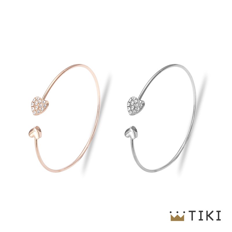 ACC082 Gelang Bangle Open Cuff Motif Hati Kristal untuk Wanita 10gr