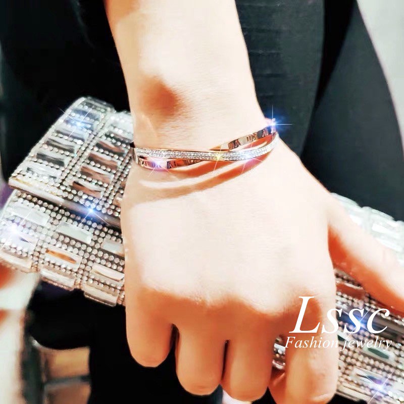 Gelang Titanium Premium Lapis Rose Emas 18k ANTI KARAT Wanita Perhiasan Pasangan Bangle